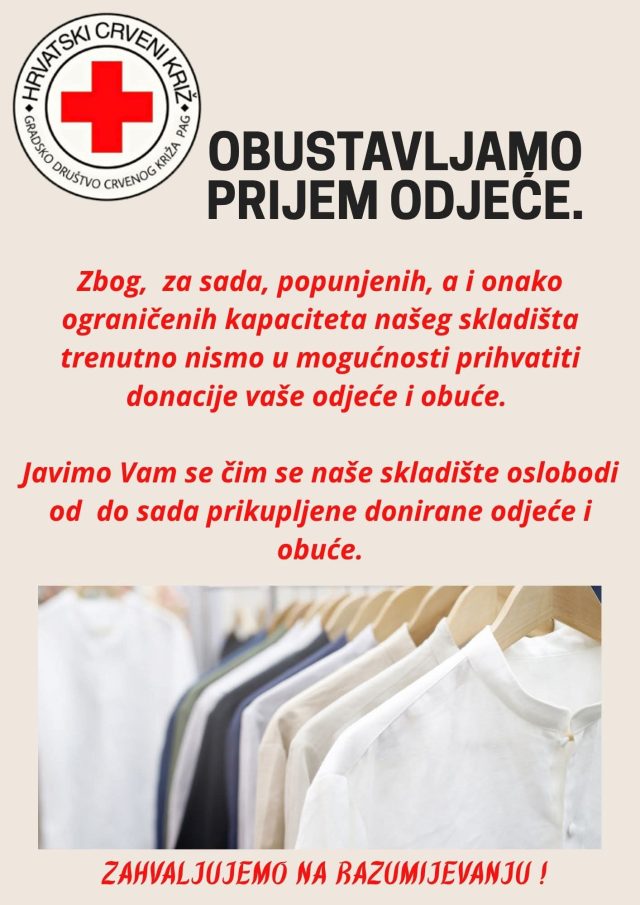 Ujedno Vas ovim putem molimo da ne ostavljate svoju donaciju odjeće ispred vrata ili kontejnera jer više nemamo gdje smjestiti istu.